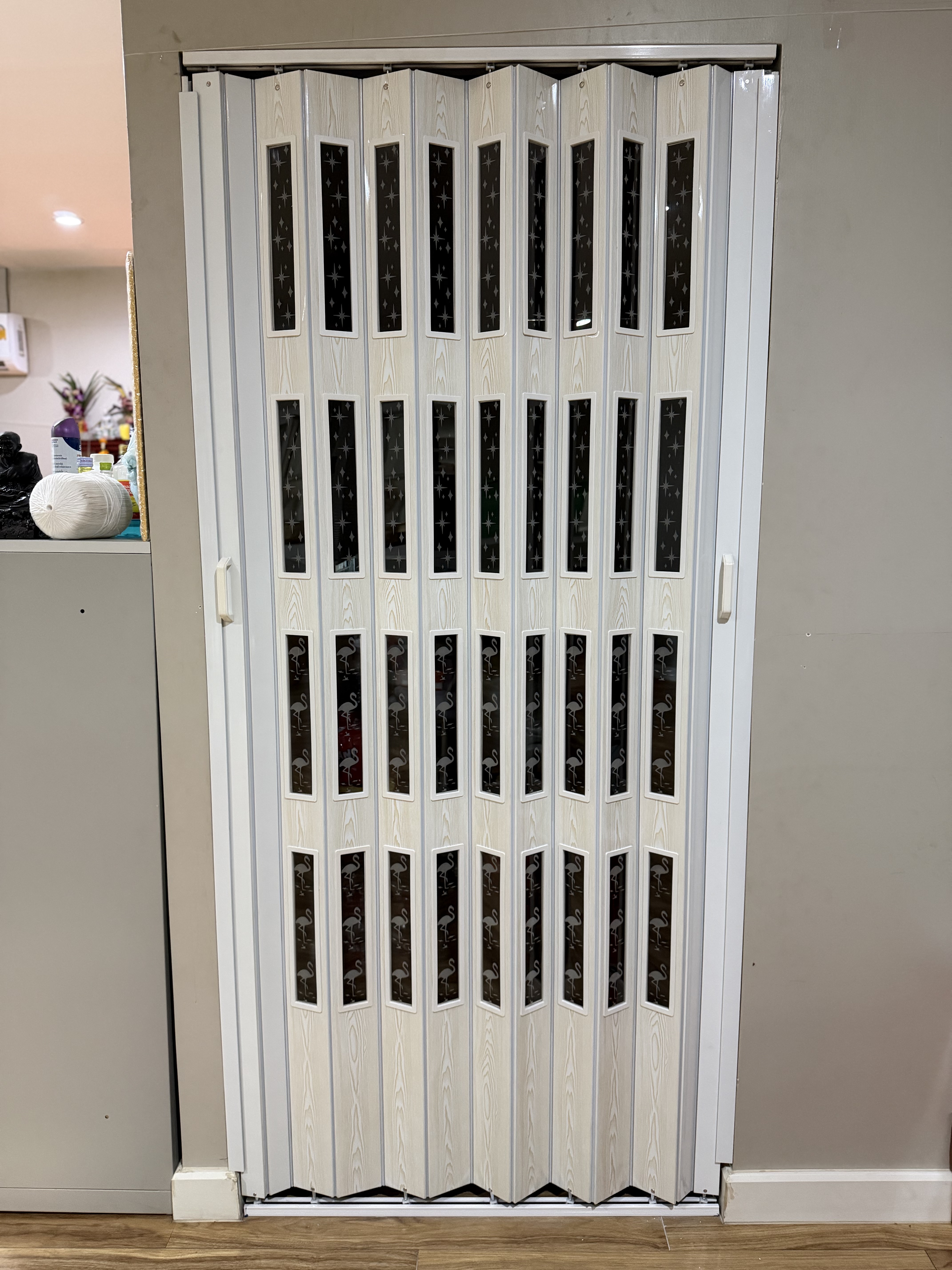 "ฉากกั้นห้องชนิดแขวนลอย" ด้วยการออกแบบ สไตล์ KPT Home ลูกค้าสามารถเลือกแบบ และตกแต่ง "ฉากกั้นห้องชนิดแขวนลอย"เพื่อให้เข้ากับพื้นที่ของลูกค้า เช่น สี ลวดลาย สามารถใส่กระจกลวดลายต่างๆได้หลากหลายรูปแบบ ทาง KPT Home ได้เตรียมไว้ให้ลูกค้าเลือกสรรค์ตามความต้องการ ลุกค้าสามารถระบุความกว้าง ยาว และการออกแบบราง เพื่อให้ได้ตามความต้องการของลูกค้าได้
